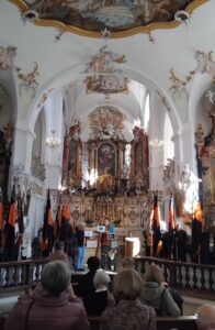 Bei schönstem Wiesnwetter nahmen 8 Mitglieder unserer Kolpingfamilie daran teil. Vom Parkplatz am S-Bahnhof ging es mit drei Stationen zu der historischen Klosterkirche, in welchem der Gottesdienst gefeiert wurde.