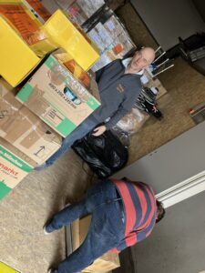 Im Oktober sammelten wir an drei Terminen Hilfspakete für Familien in der Ukraine. Nun hieß es: die gesammelten Pakete wiegen, verpacken und folieren.