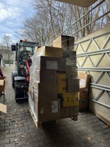 Jetzt steht dann der Transport vieler Paletten mittels LKW in die Ukraine an.