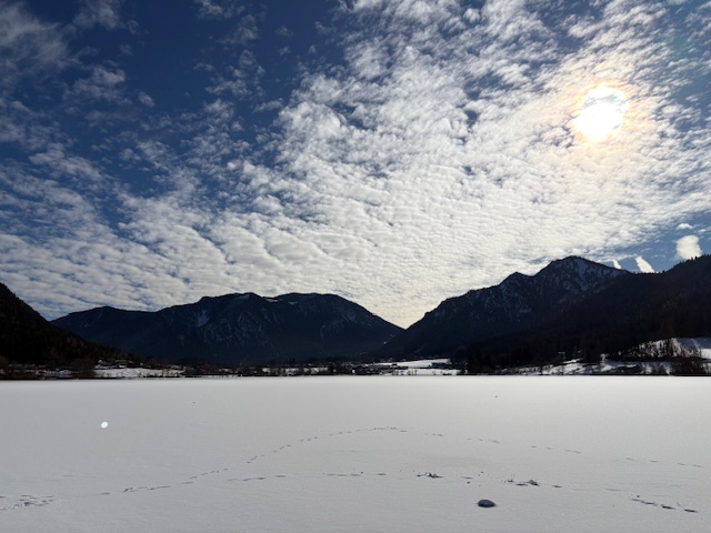 Am 31.01.2026 machten wir eine Wanderung um den Schliersee. Es ist ein malerischer Rundweg von 7 – 8 km Länge und bietet herrliche Ausblicke auf die Berge. Die Gegend war weiß von Schnee und wir hatten Kaiserwetter mit Sonnenschein, blauem Himmel und es war relativ warm. Die Sonne, der Schnee mit dem See verbreiteten eine wundervolle Atmosphäre und Stimmung. Wir waren 15 Personen.